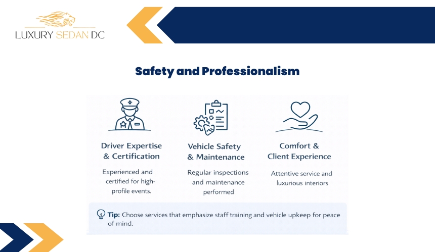 Professional leisure car services prioritize safety, reliability, and comfort. Drivers are trained, licensed, and often background-checked to provide peace of mind during high-profile events.