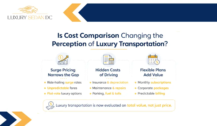 As consumers shift toward mobility-as-a-service rather than ownership, perceptions of cost are evolving. Luxury car services are increasingly evaluated not against the cheapest ride option, but against the total economic and stress cost of daily transportation alternatives.
